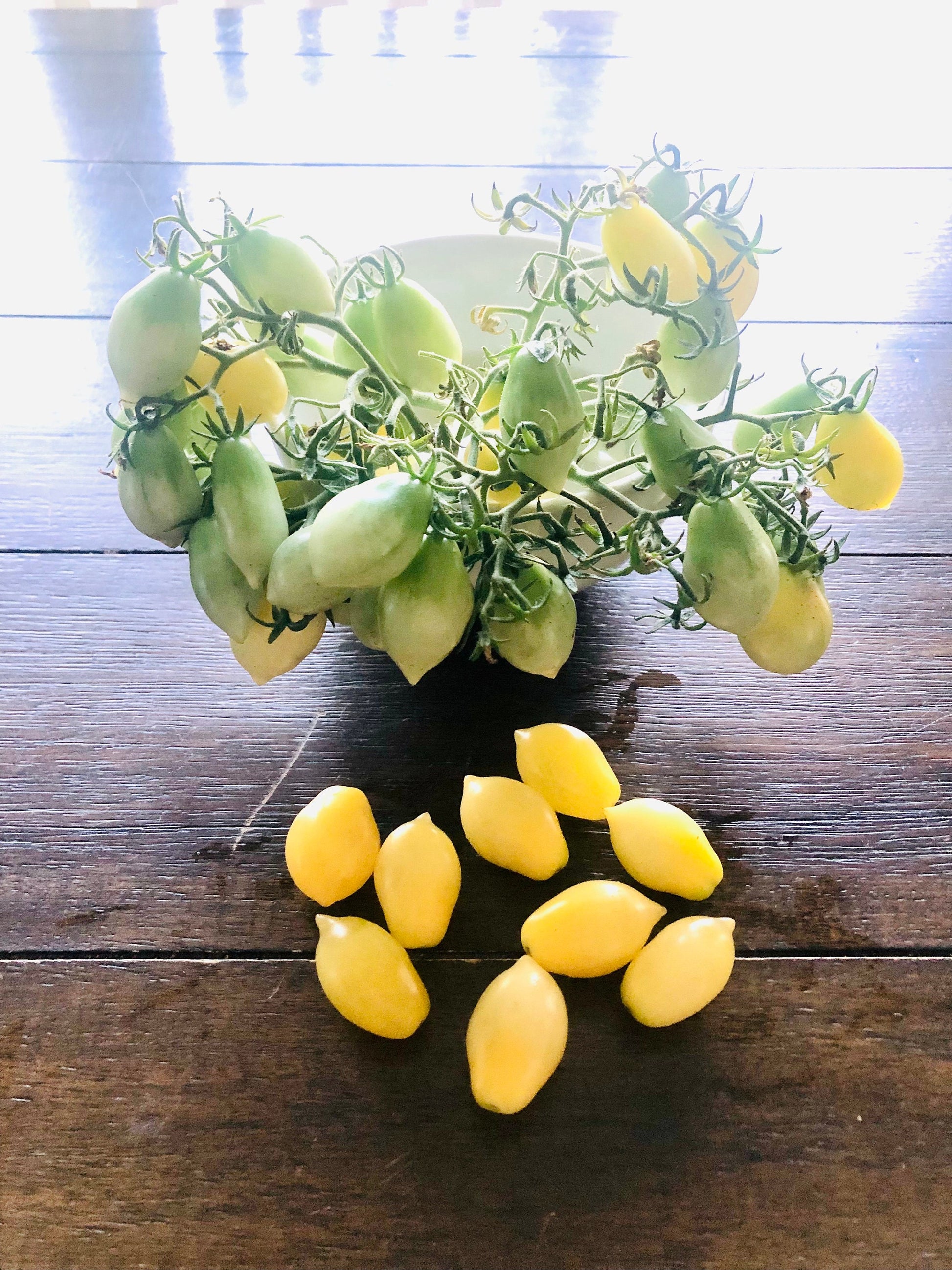 This variety looks like nature’s candy spilled across the vine! The plants explode with massive Multiflora clusters—sometimes 50 to 100 bite-sized tomatoes packed together like golden fireworks. Each fruit is a small, oval-to-teardrop shape, ripening to a glowing, sunshine yellow. Against the dark green foliage, the grape like clusters cascade like strings of jewels, making the plant look more like a chandelier of fruit than a tomato vine. The flavor is bright, sweet, and citrusy—like a burst of summer in every bite.