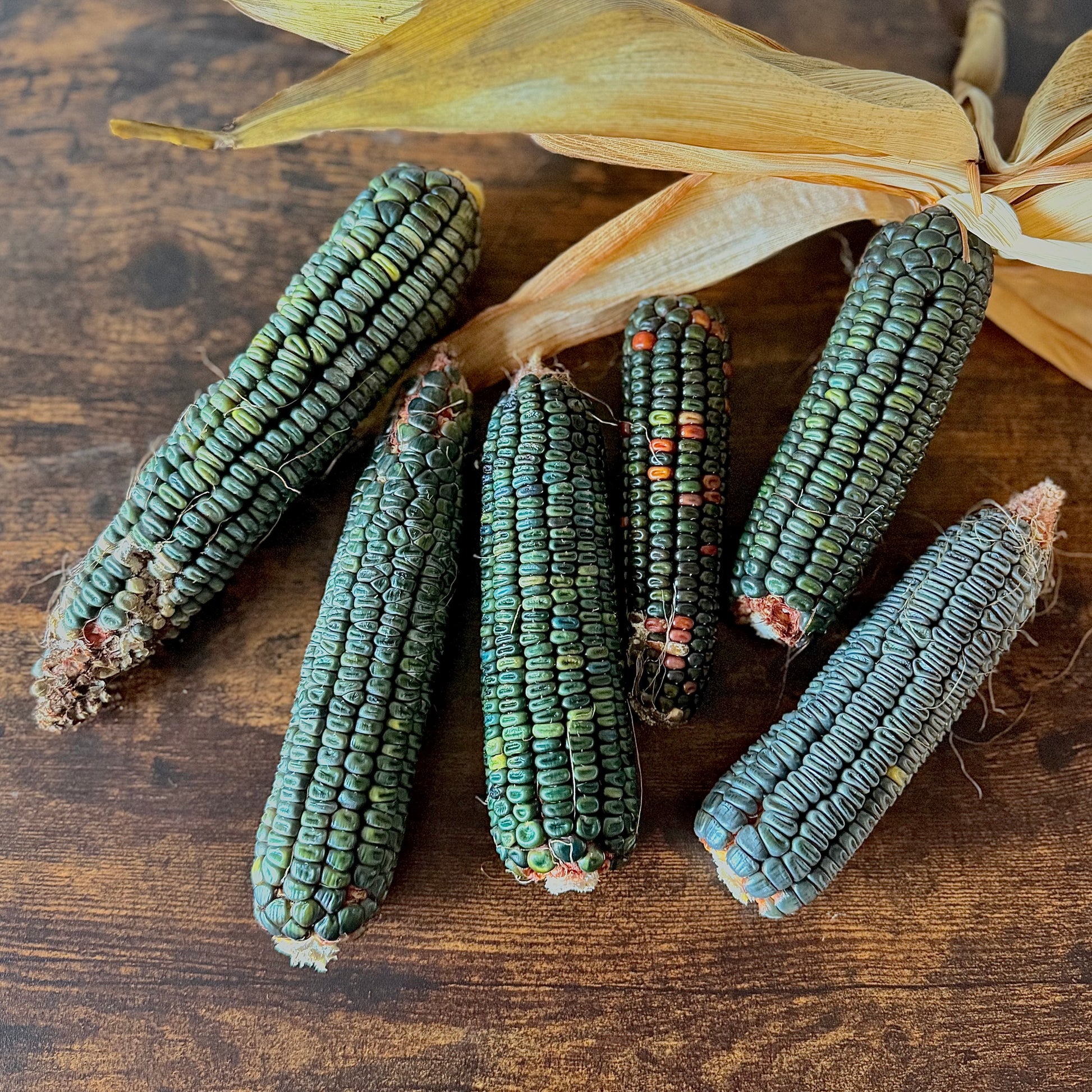 A rare heirloom treasure from Oaxaca, Mexico, this vibrant green corn is as beautiful as it is versatile. Traditionally grown for its deep green kernels used in masa and tortillas, Oaxacan Green Corn can also be enjoyed as a sweet corn when picked young — tender, flavorful, and packed with heritage. As the ears mature, the kernels deepen in color, making it an incredible dual-purpose variety for both fresh eating and traditional use. A stunning addition to any garden, celebrating the rich agricultural legacy of southern Mexico! One of the most beautiful varieties we have grown!