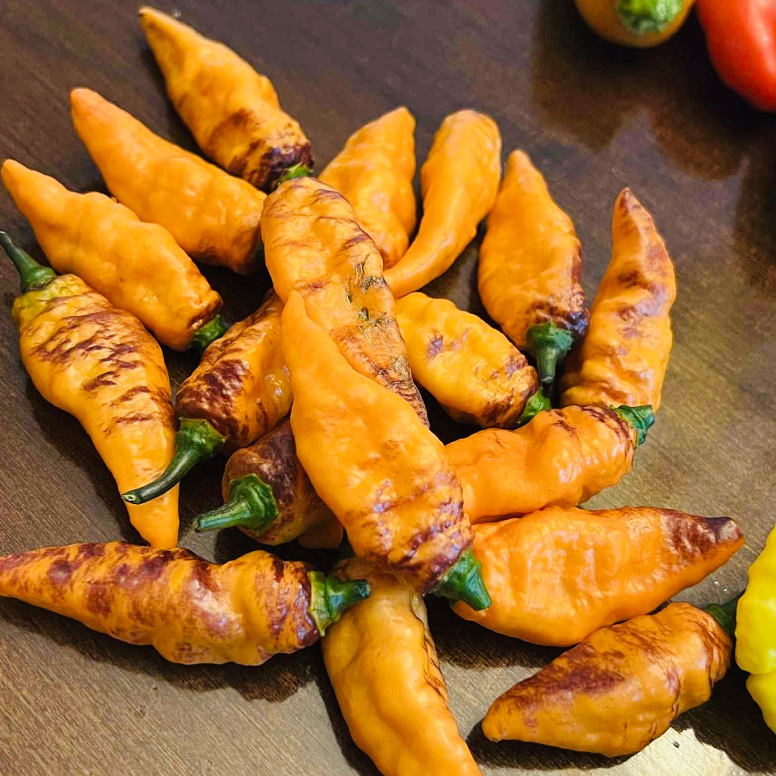 The peppers are medium-sized, with smooth skin and a sleek, tapered shape. Their flavor carries a fruity, smoky undertone beneath the heat, making them a standout for salsas, hot sauces, and bold culinary experiments.
