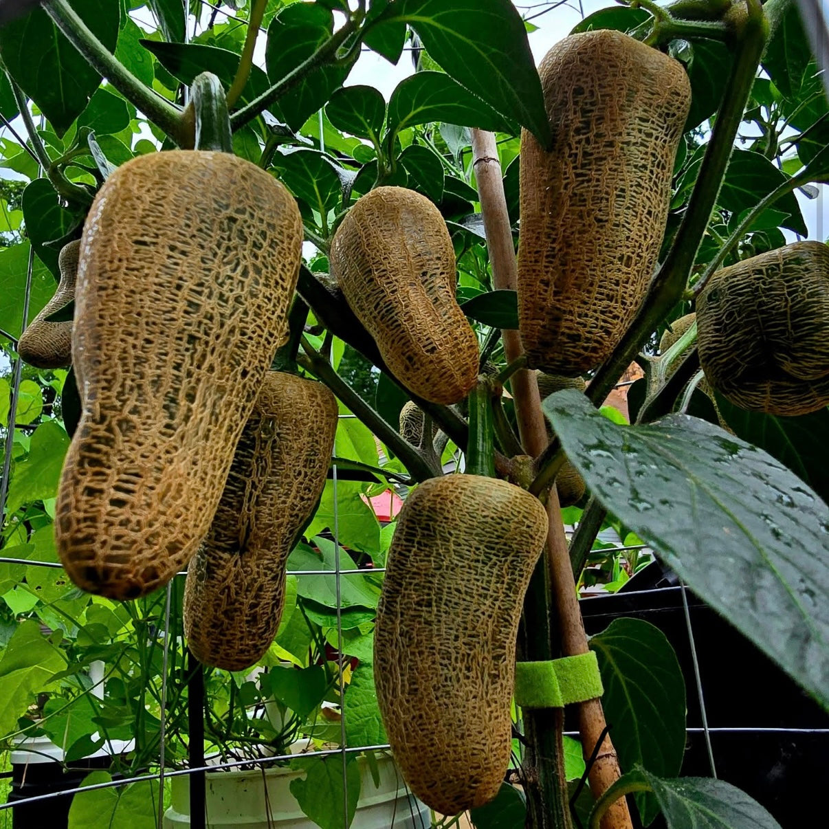 The Farmer’s Market Jalapeño is a unique and eye-catching variety that stands out from standard jalapeños. Instead of the smooth green or red skin most people expect, this pepper has a heirloom look with crackled, corky striationsrunning across its surface, giving it a rustic, farm-stand charm. The fruits are medium-sized, typically 2–3 inches long, with a classic jalapeño shape but a much more artisanal appearance.