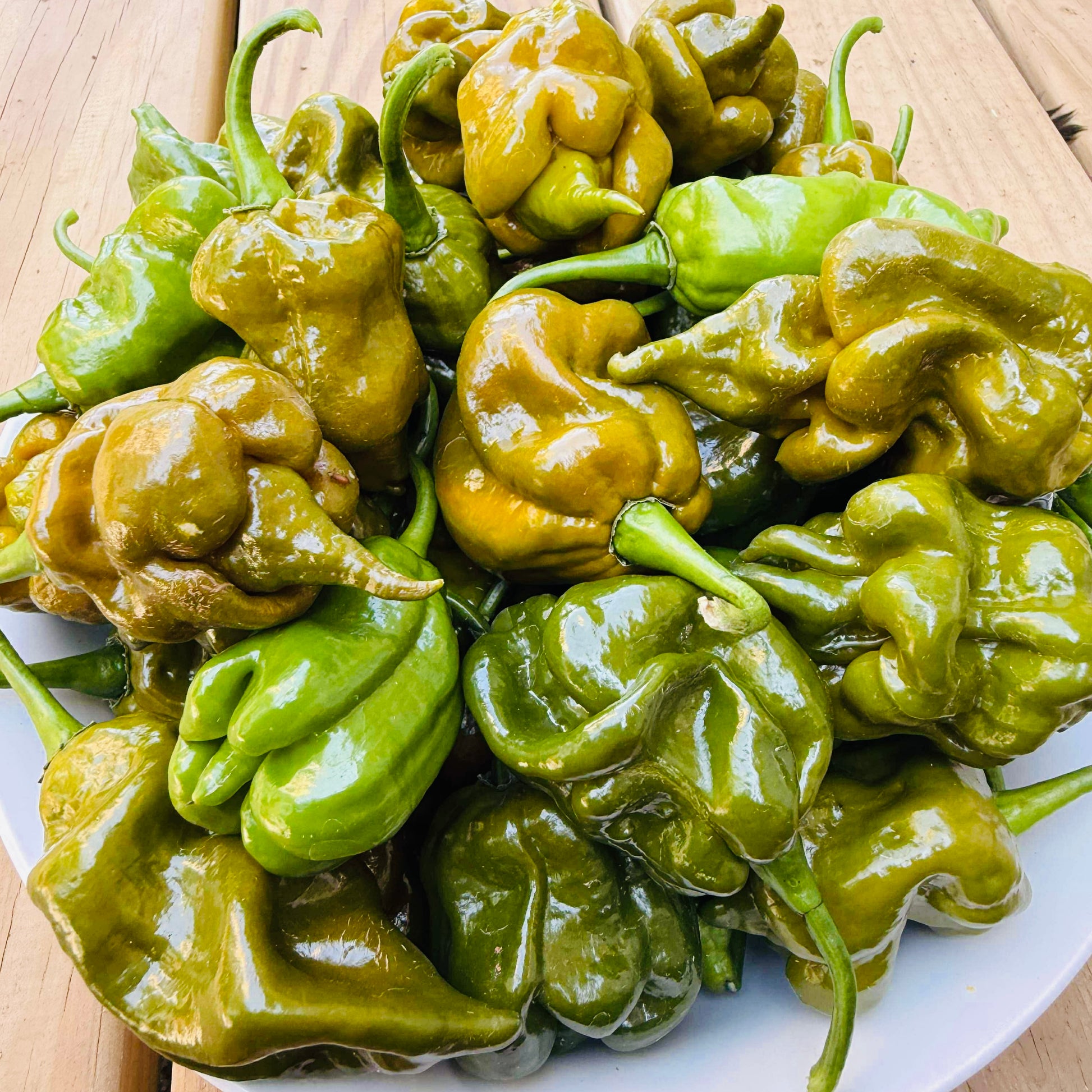 The Big Mustard Momma is a massive and fiery superhot variety bred by pepper grower Troy Primo, the creator of the famous 7 Pot Primo. True to its name, this pepper produces some of the largest superhot pods, often weighing much more than typical superhots, with smooth, wrinkled skin and unique mustard-to-olive-green coloring when fully ripe.