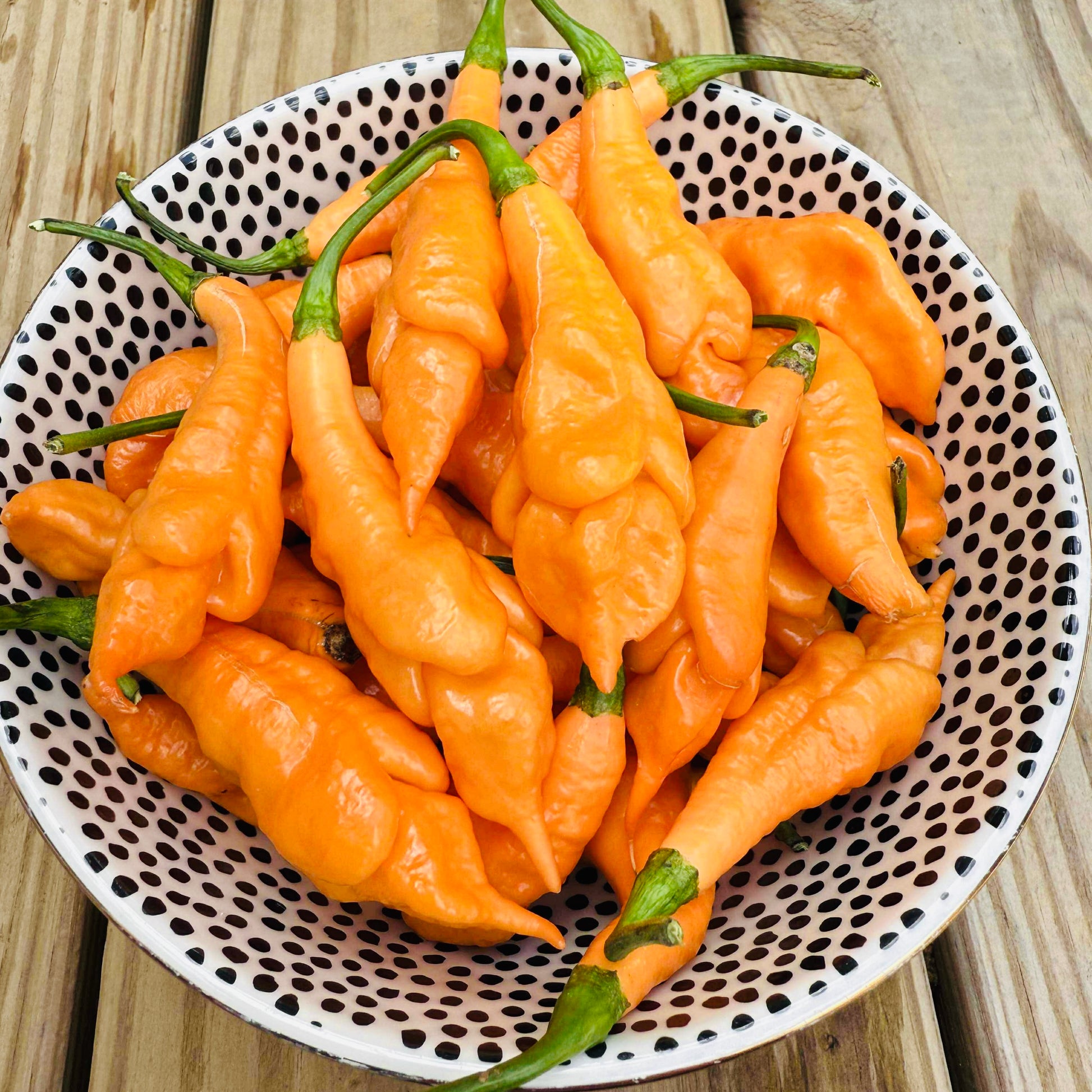 The plants themselves are vigorous and high-yielding, producing heavy clusters of these dramatic, horned pods throughout the season. A true showstopper in any superhot collection.