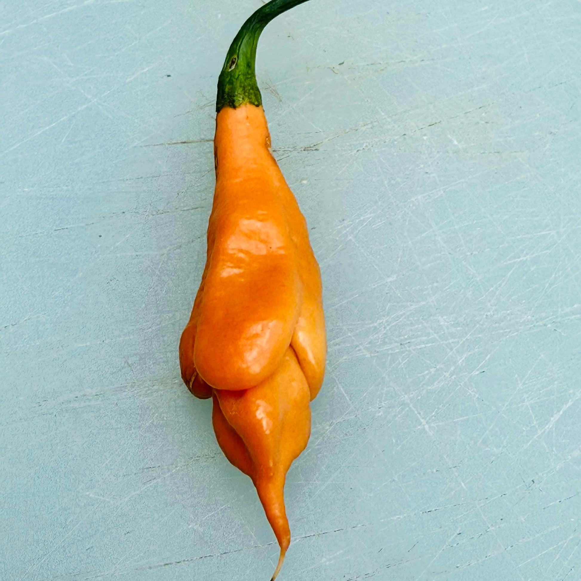 The Rhino DD pepper is a fierce and extremely rare superhot variety that stands out for its gnarled, horn-like shape and blistering heat. The pods often form with sharp points or “rhino horn” tails, giving them a wild and intimidating appearance. When ripe, they mature to a brilliant red, sometimes with wrinkled, bumpy skin that signals just how fiery they are.