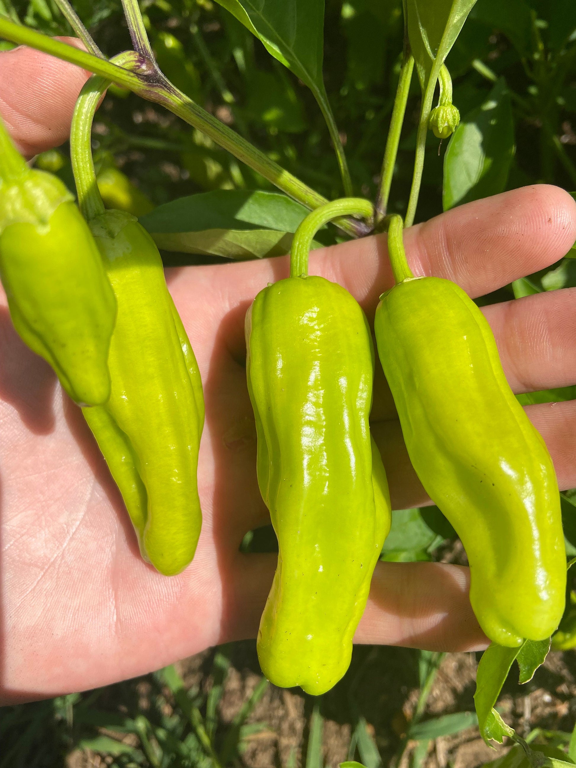 An heirloom Japanese variety. Shishito pepper plants produce 3-4" thin walled wrinkled fruits. Peppers start out bright green, and mature to a deep red that eventually give off sweet and spicy undertones! These are mostly mild peppers, but do give off a smoky taste, with a little heat. These peppers are perfect for smoking, roasting, grilling, or even pickling, as the skin is very crunchy, but hollow on the inside! This variety is becoming rather popular in the US, as it is easy to grow, produces an abundant crop, and has great taste, that is perfect in limitless dishes! An all around amazing pepper!
