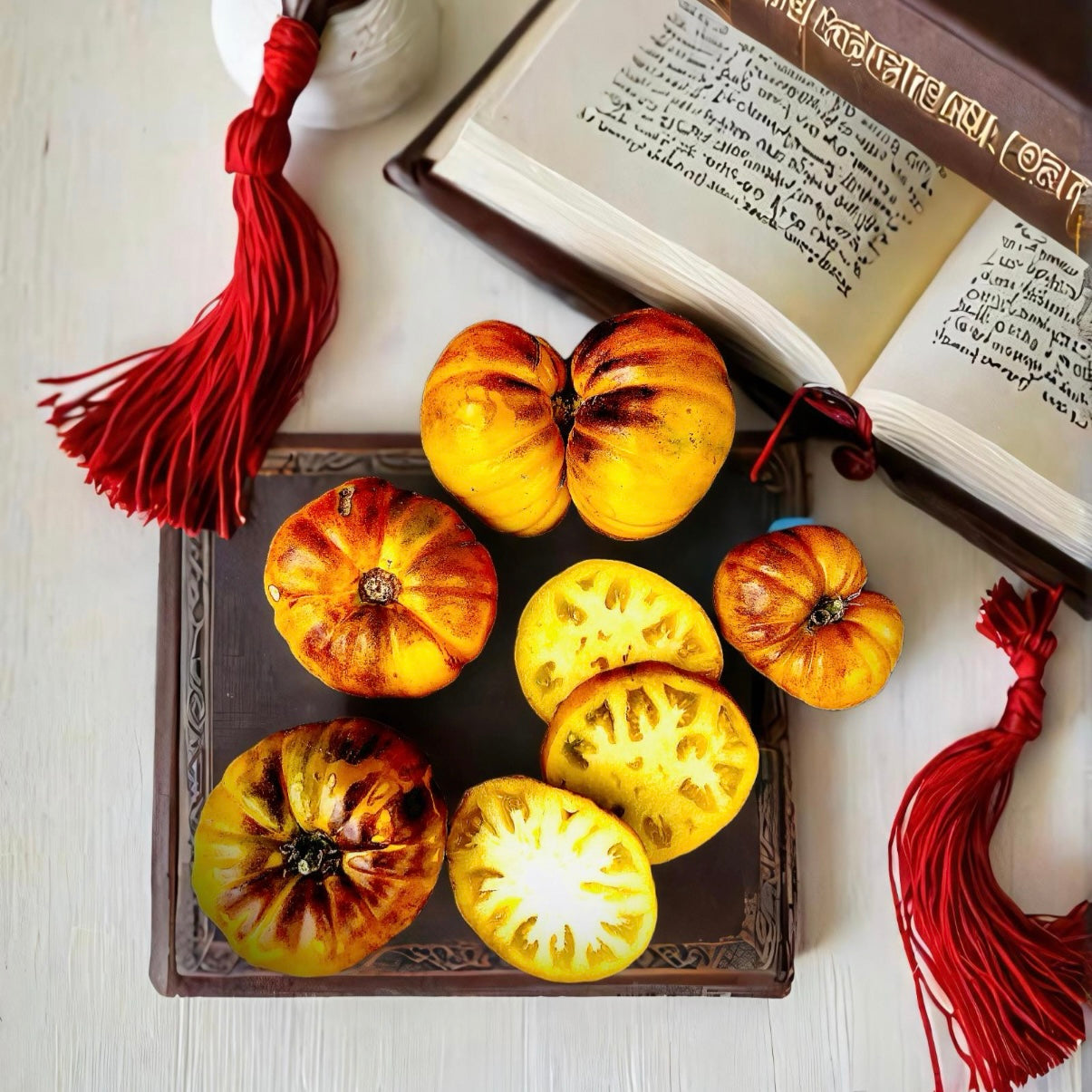The Moon Eclipse tomato looks like something from another galaxy πβ¨π . Medium-sized and round, its skin is a striking mix of deep Amber and glowing golden-yellow, blending together like a cosmic sunset. The shoulders often carry the darkest hues, while the base glows with a bright yellow. When sliced open, the flesh is juicy and creamy! Smooth, shiny, and eye-catching, this tomato is both a gardenerβs showpiece and a delicious table variety. π Indeterminate