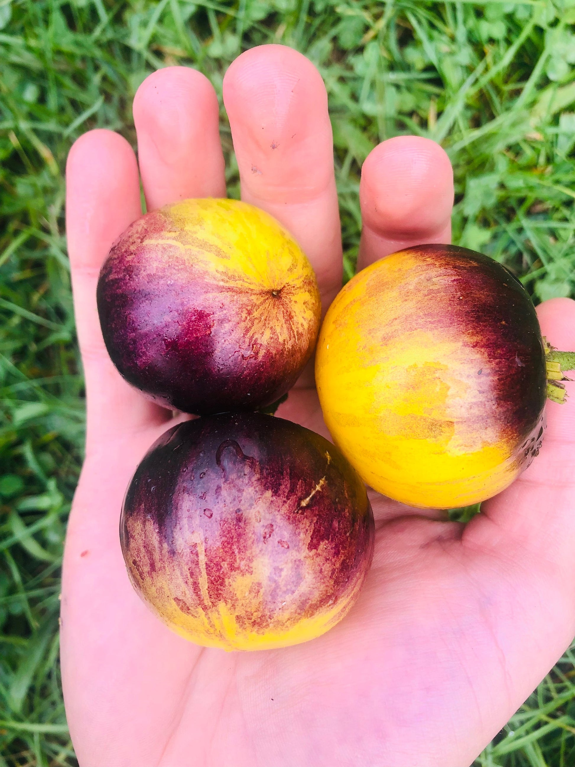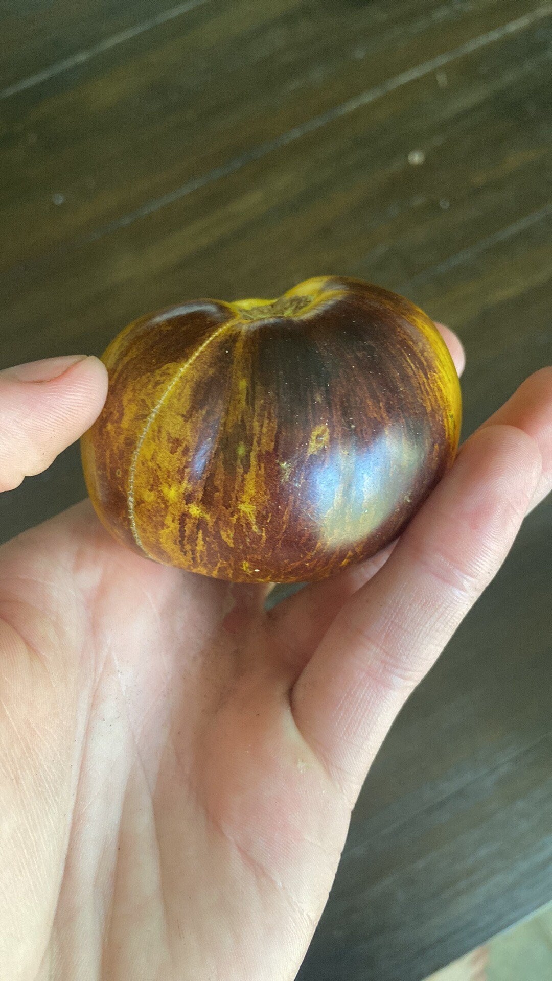 Ussuri tiger is one of my favorites! It has the most amazing coloration with browns fading into light yellows when fully ripe. They are small slicers, but very productive! Fruits have a light tomato flavor with very little acid, and a slightly tropical taste! Perfect size for eating right in the garden! Plants get very tall and like to produce a lot of suckers (side shoots). In my experience, this variety took a little longer to mature, but was easy to grow throughout the season. A good market variety, and canning tomato!