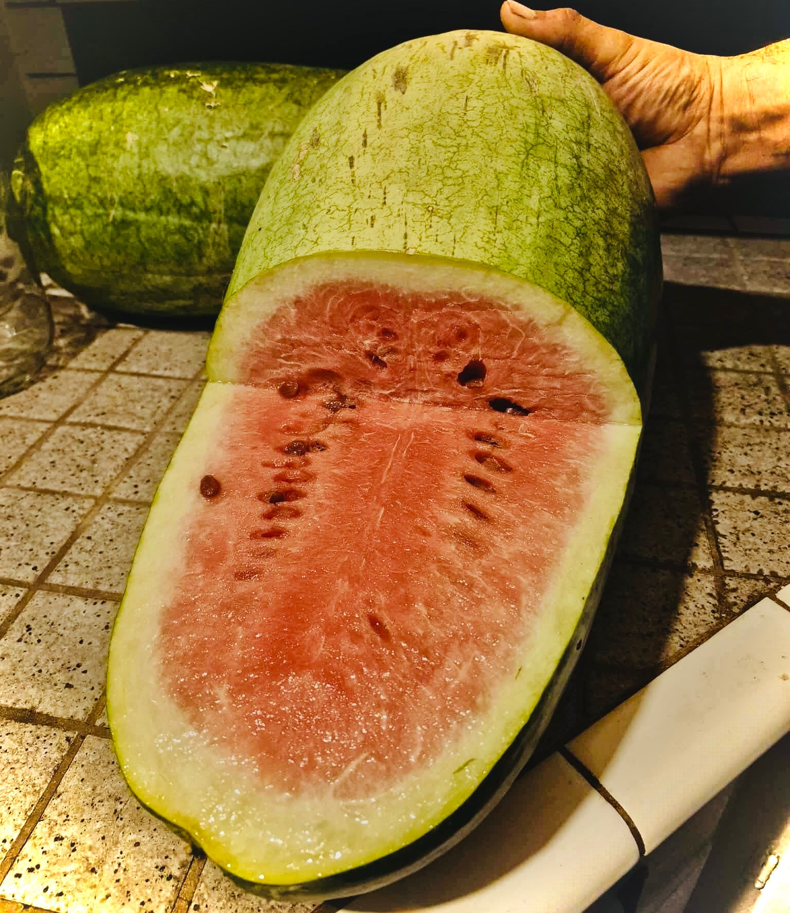 Now here’s a variety I’m excited to introduce! This variety was originally found by Southwestern Plant Expert, Art Combe who found seeds to this variety in a Woven Pot in an abandoned sandstone cave in the early 1920s. Nobody knows exactly how old this variety is or where it came from, but what we do know is these seeds were taken back, grown out and selectively bred taking the best watermelons of the batch which has now given us this variety that produces MASSIVE 20-30Ib watermelon and a sugar sweet taste in every bite!